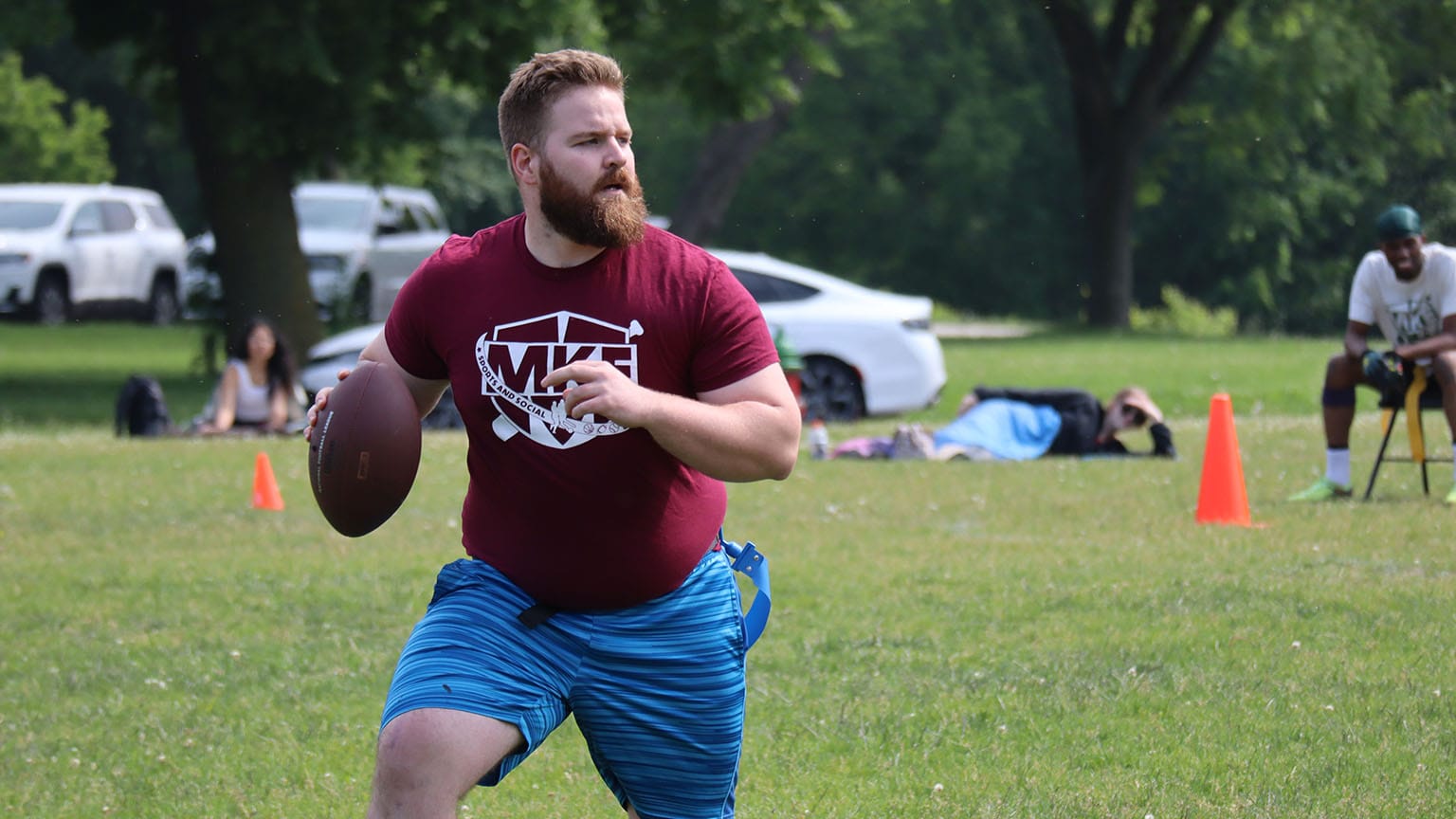 Footballs, cones, and Flags will be provided every night by Milwaukee Sports and Social.